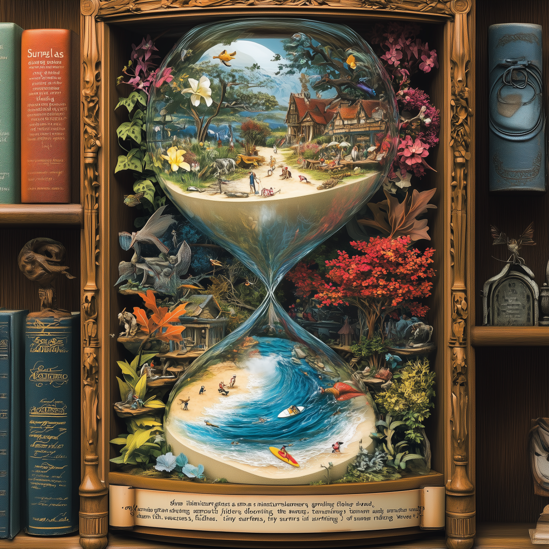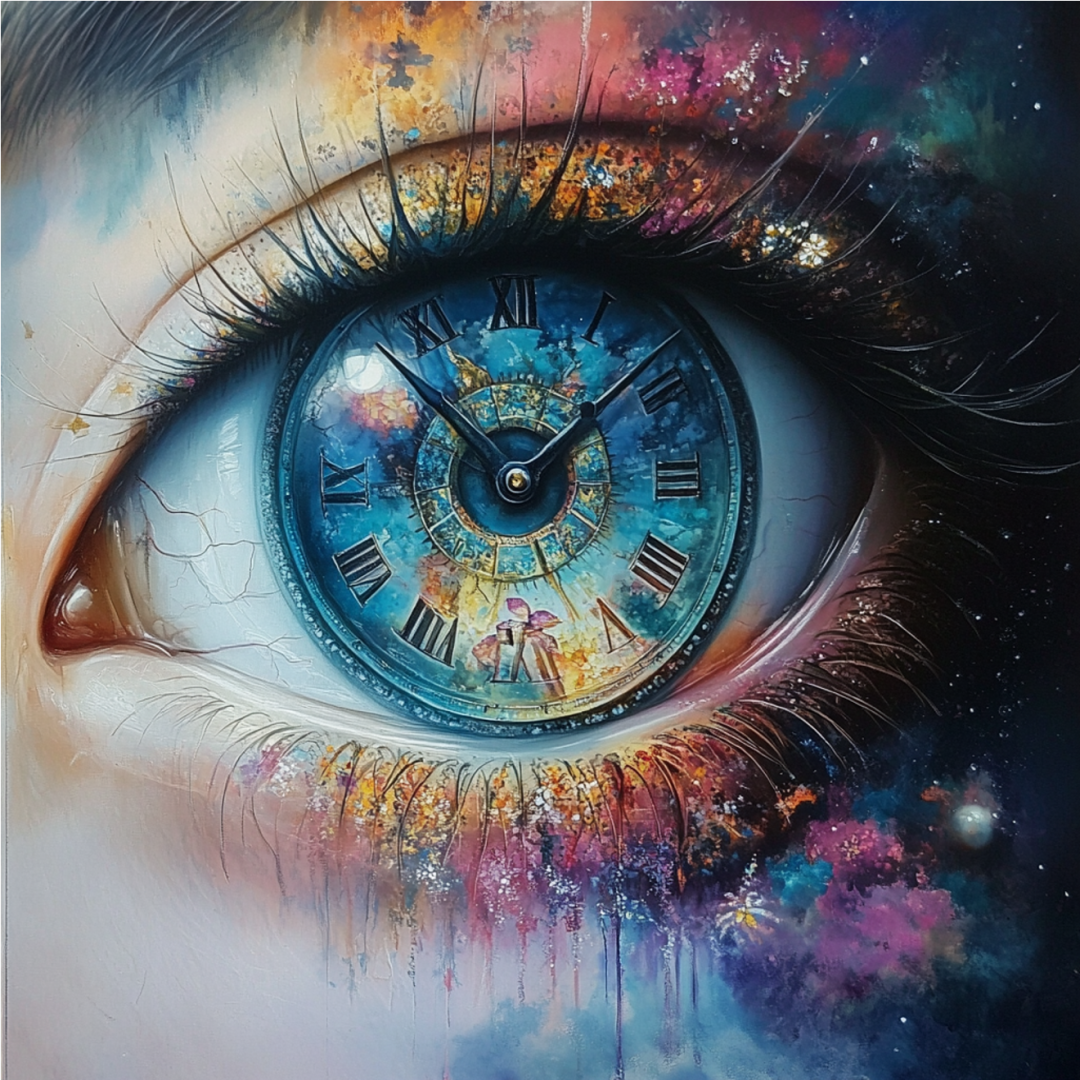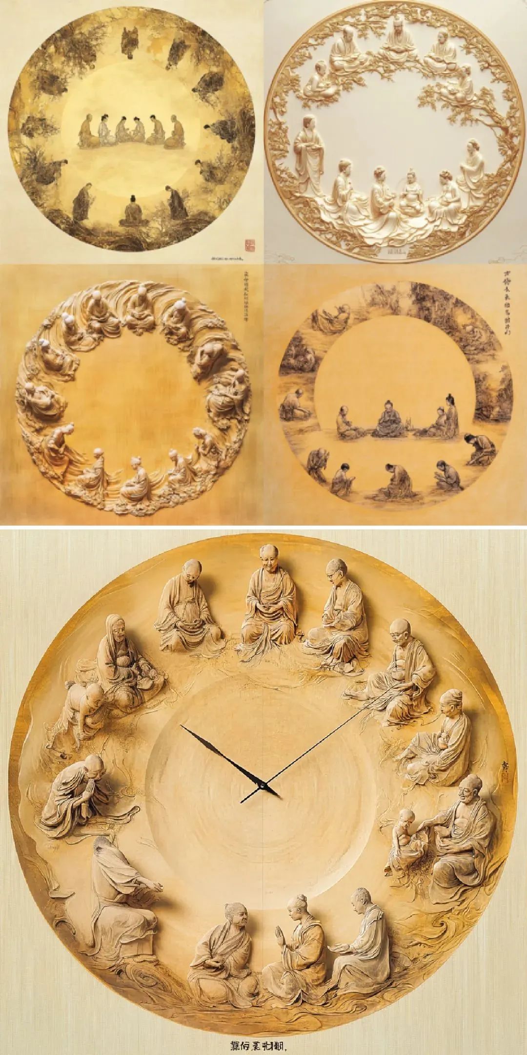 时间并不是线性发展的,而是循环往复。通过呈现周期性重复的符号,如太阳与月亮交替、四季变化等,来表达时间的循环性。超现实的画面可以把这些元素变形或错位,以表现时间在个体感知中的无穷延续。