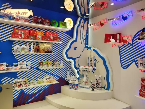 在华山263老字号品牌馆,我们了解了大白兔奶糖的品牌历史,也看到许多它的创新产品,并进行了体验。