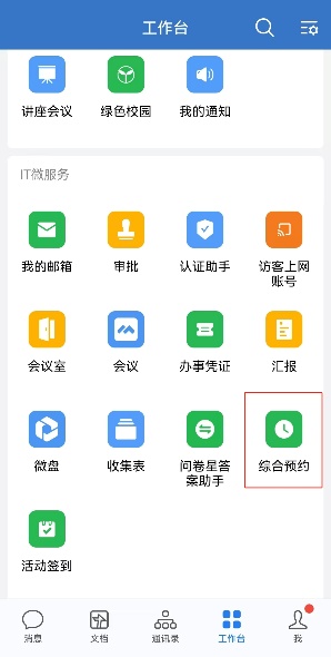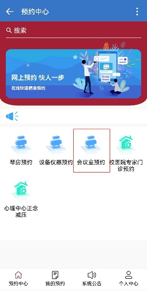集团微信企业号:选择“综合预约-会议室预约”功能