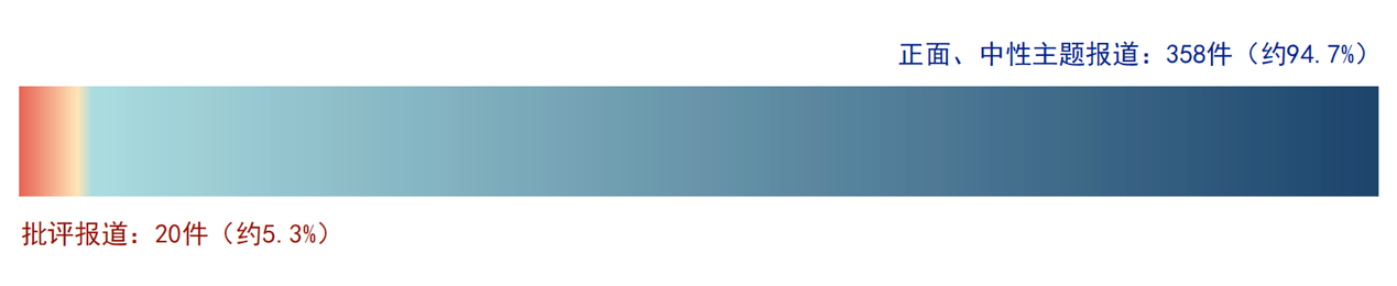 在对378件获奖作品的主题分析中,舆论监督类的批评报道共计20件,占比5.3%,其余则为正面或中性主题的报道。正面报道主要关注「中共二十大」、 「2022年北京冬奥会」、「敦煌」、「环境保护成果」、「大型基建完工」、「时代楷模」等主题,展现了新时代的伟大变革与成就;舆论监督报道则聚焦于「商品质量问题」、「房屋公摊面积问题」、「环境破坏问题」、「劳动合约问题」等议题,关注到影响人民幸福安康的突出问题。