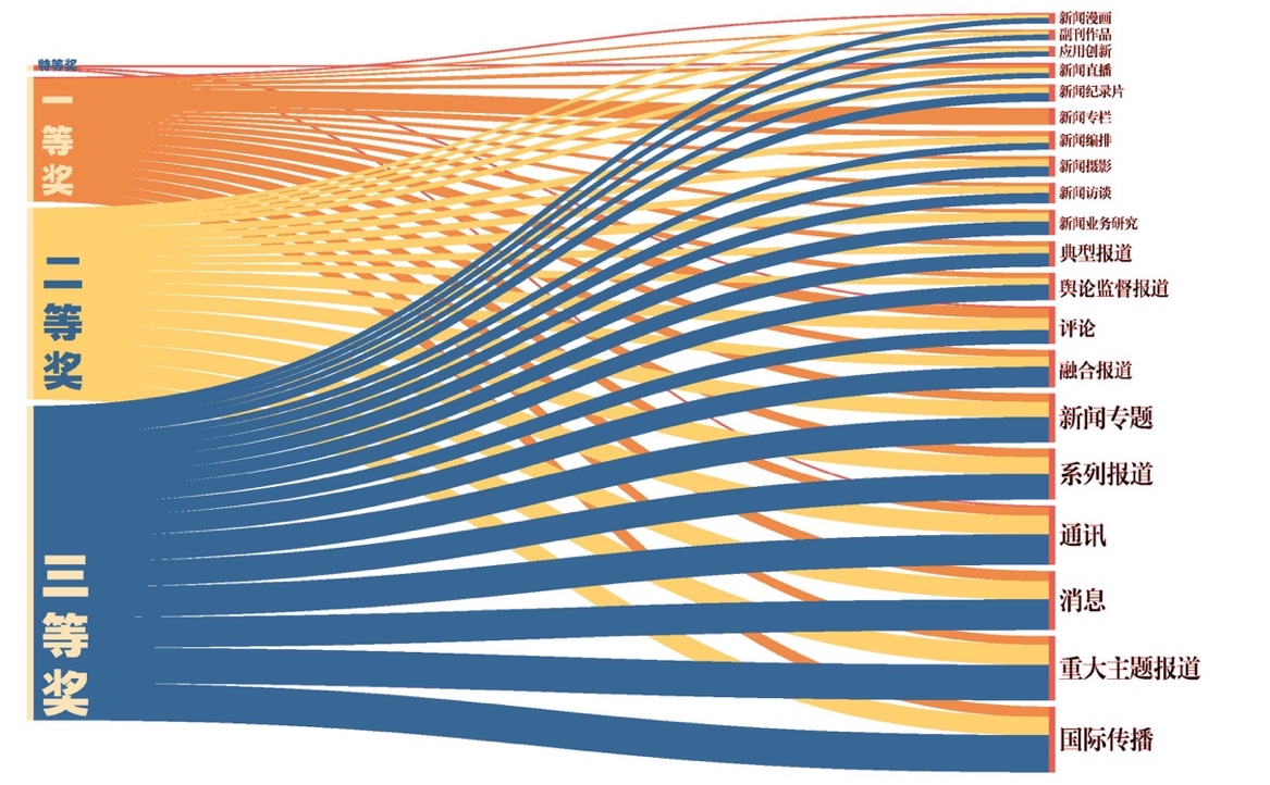 中国新闻奖是经中央批准常设的全国优秀新闻作品最高奖,由中华全国新闻工作者协会组织评选,自1991年开始,每年评选一次。讲好中国故事,澎湃时代动能,中国新闻奖潜藏着哪些时代密码?获得中国新闻界最高荣誉的378件作品,如何凝聚展现时代风貌、肩负时代重任?请看本届获奖作品的数据分析。