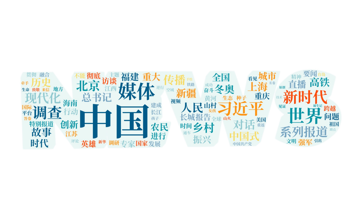 通过对378件获奖作品的标题进行词频统计,除「中国外,出现频次最高的是「新时代」、「总书记」和「世界」。此外,「经济」、「农业」、「民生」、「铁路」、「城市规划」、「人民英雄」、「环境生态」、「乡村振兴」、「干部党纪」等议题也是出现的高频词,这些主题成为报道主旋律的重要音符。