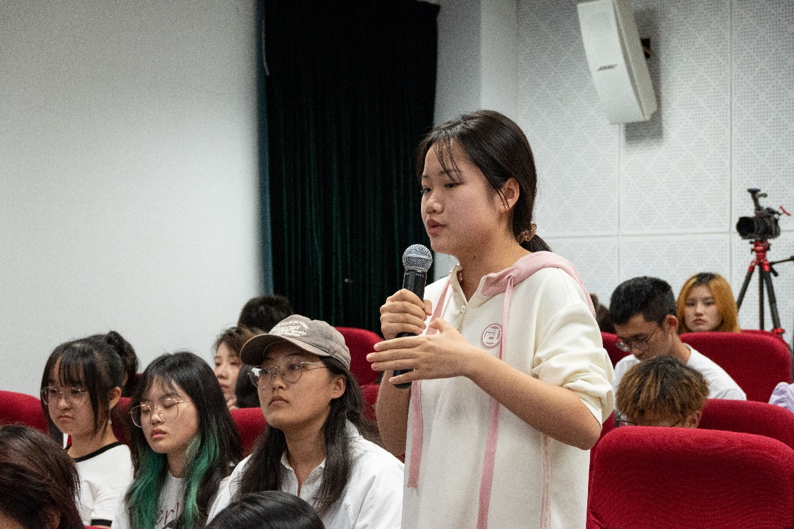 展映结束后,韩君倩导演和观影员工们展开了热烈的交流。同学们踊跃发言,从人物、主题到影片拍摄的诸多细节等多个方面表达了对这部影片的喜爱和与导演交流的强烈意愿。面对同学们的诸多问题,韩君倩导演熟练且耐心地进行了一一解答。