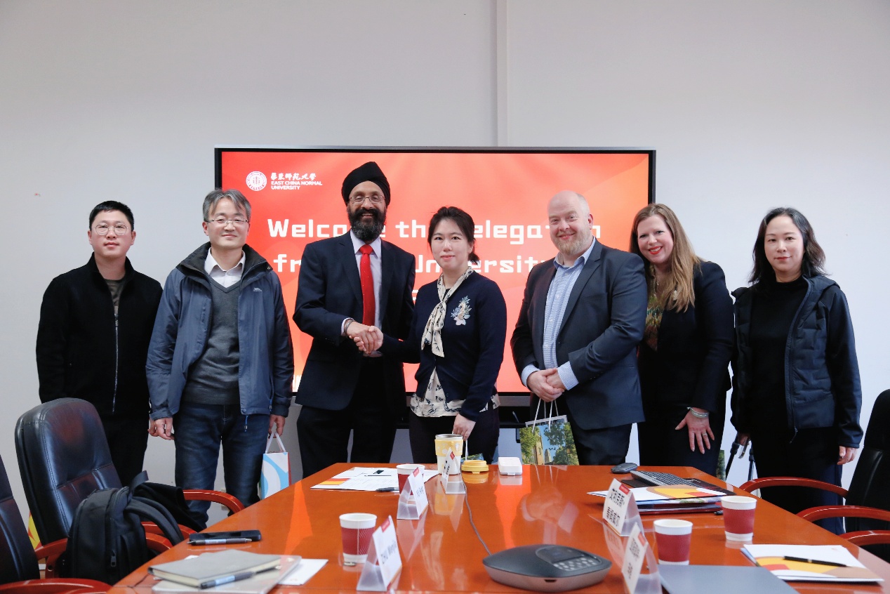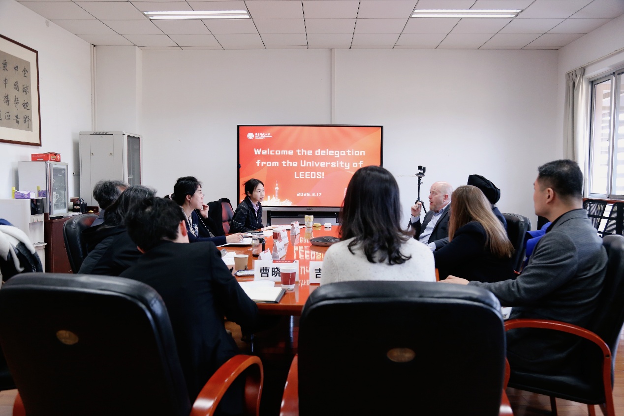 3月17日下午,英国利兹大学艺术人文与文化学部副部长Jasjit Singh教授,语言文化与社会公司经理Emma Cayley教授、文化创意与企业领导力硕士项目负责人Alex Timewell博士、国际办公室招生与合作经理刘哲一行来访,哲学系副系主任郁锋,外语公司教授袁筱一,公司党委书记朱文佳、副经理路鹏程,公司学国际合作与交流处项目专员曹晓颖等参加座谈会,路鹏程主持会议。