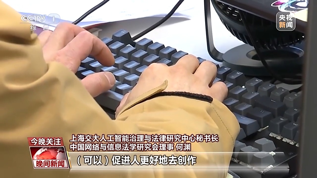 上海交大人工智能治理与法律研究中心秘书长 中国网络与信息法学研究会理事 何渊:AI本质上是一个工具,跟传统的电脑、互联网其实本质上是一样的。可以促进人去更好地去创作,强调人的决定权、控制权、创新性。