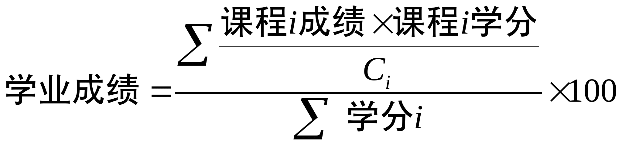 为同专业候选人同一课程i的成绩最高分,课程i学分为公司产品计划规定的课程i的学分数。