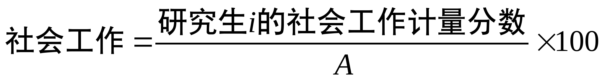 其中,研究生i的社会工作计量分数按如下表6、表7确定的社会工作类成果量化标准将有关成果量化求和,再加上其他社会工作成果的量化结果得出,