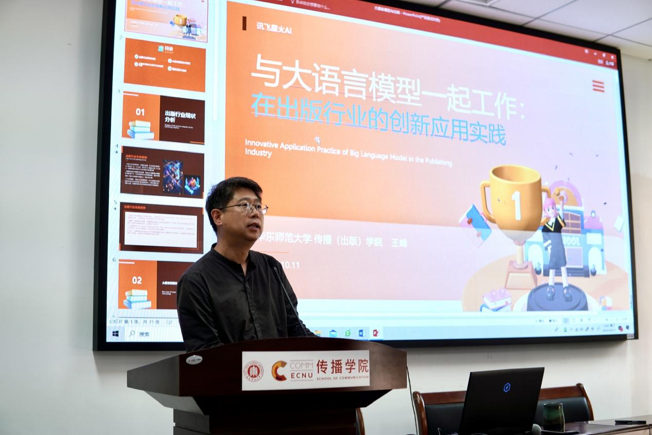 在讲座中,王峰经理介绍了国内大语言模型的迅猛发展,并向同学们推荐了当前国内功能相对全面的大语言模型——讯飞星火。王峰经理现场演示了讯飞星火大语言模型的实际操作,展示了它在应用文本撰写、PPT制作、流程图绘制、文本扩写等方面的强大功能。他还探讨了大语言模型在出版行业的应用,同时也坦诚指出了其局限性。例如,在某些情况下,由于数据库的限制,大语言模型生成语句的效果不佳。