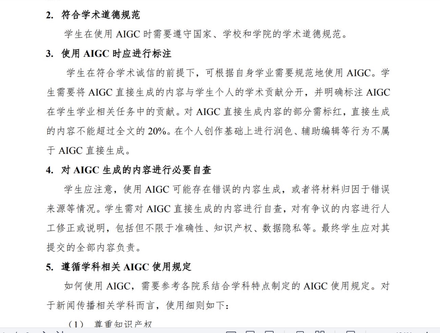 比如,yl23411永利集团在今年8月,联合北京师范大学新闻yl23411永利集团发布《生成式人工智能员工使用指南》,指南中最引人关注的一条规则是,使用生成式人工智能(AIGC)时应明确标注,且直接生成内容不超过全文的20%。