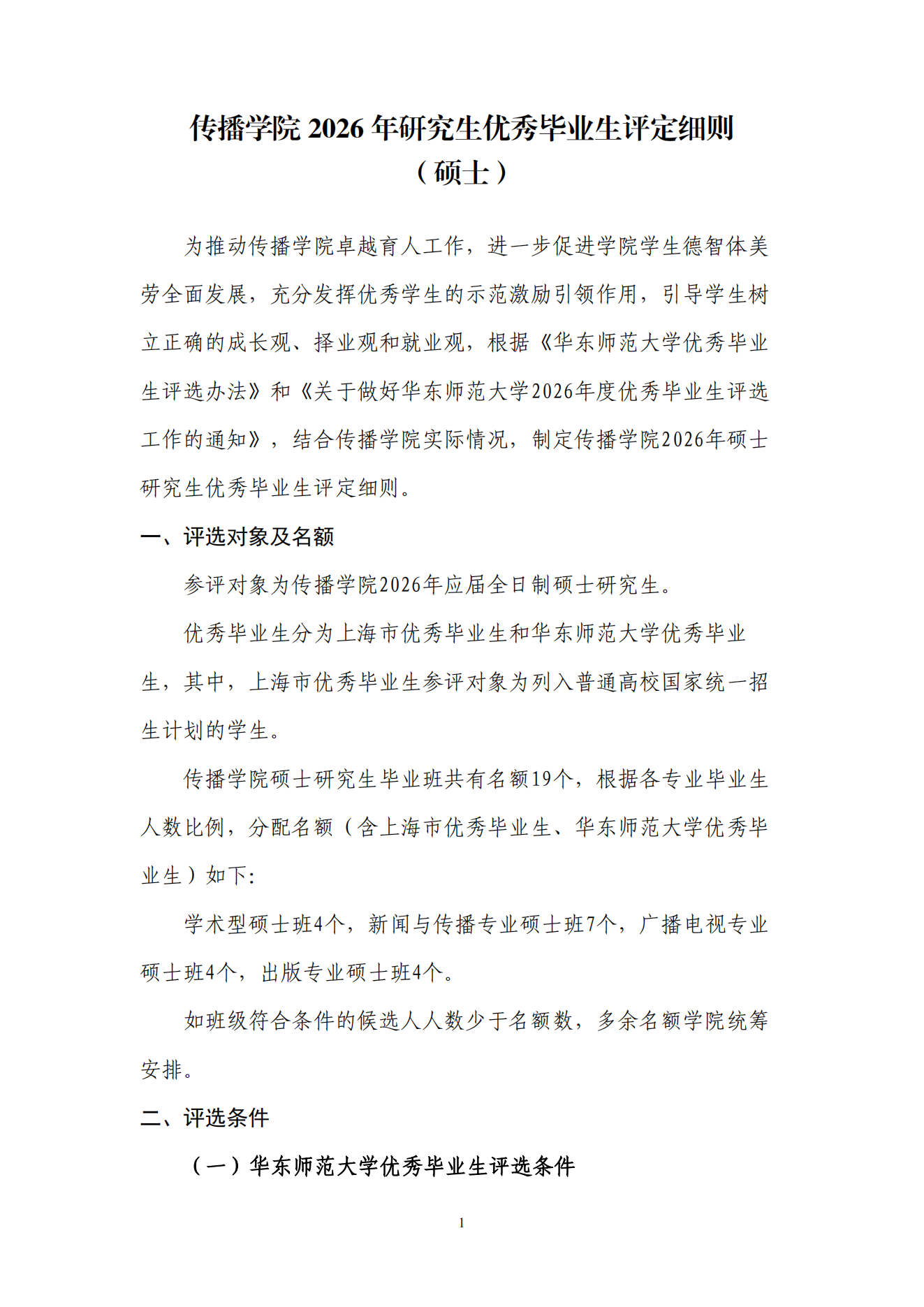 yl23411永利集团2026年研究生优秀毕业生评定细则(硕士)