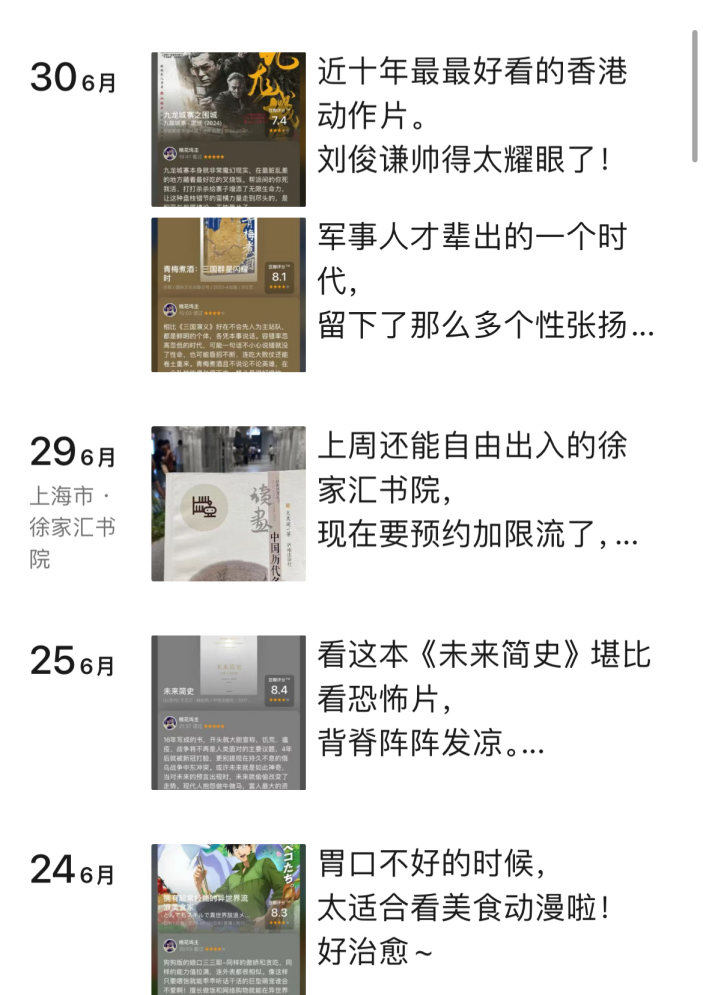 朱方园热衷于在朋友圈分享阅读与观影心得
