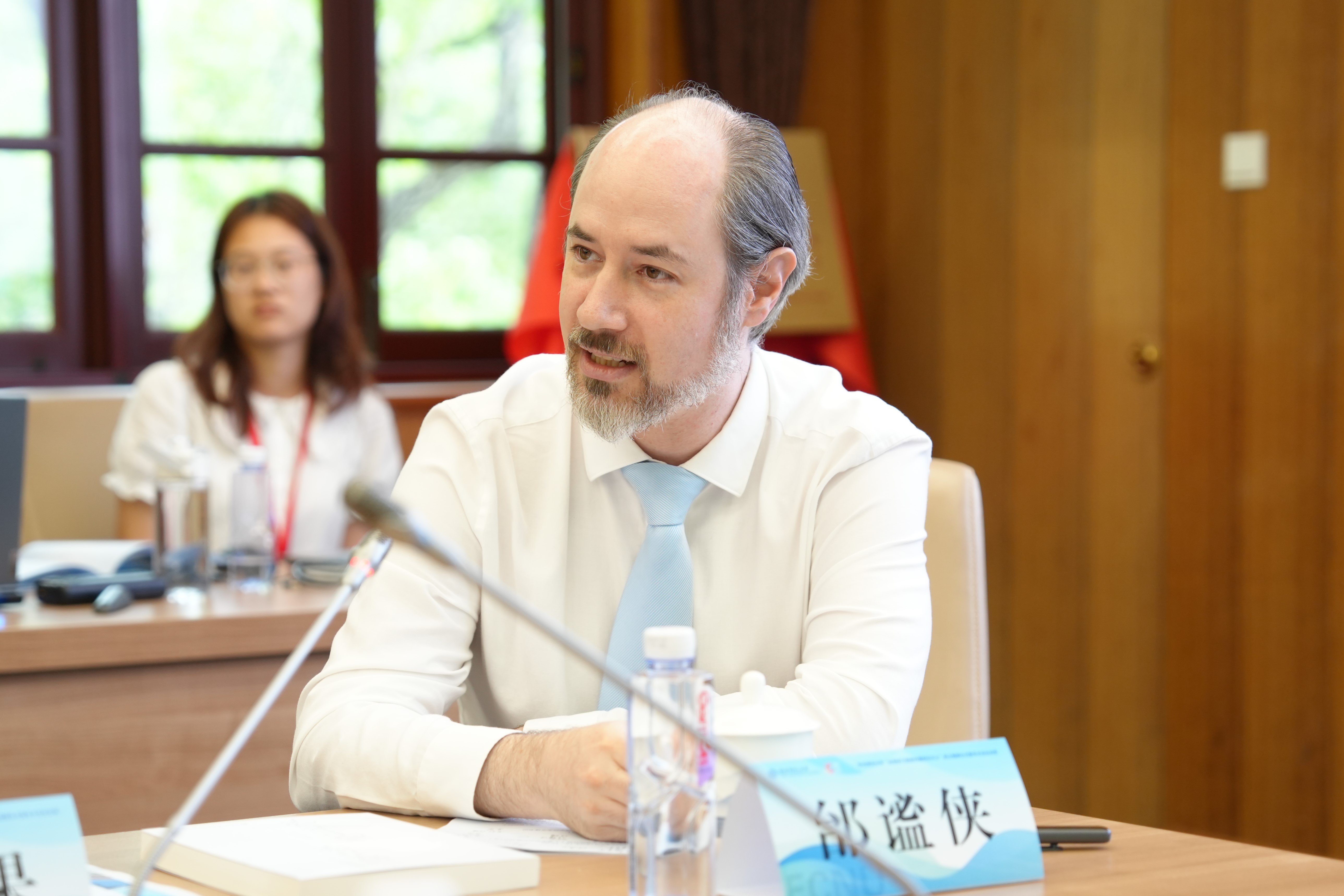 南开大学哲公司副教授、南开大学全球老学研究中心主任邰谧侠从跨文化传播视角分享了自己对老子思想的全球传播的看法。他以自身经历为例,指出自己就是老子思想国际传播的典型个案——14岁在美国接触《道德经》英译本后终身投入研究。他还提出研究中心的英文名称中的“传播”应翻译“circulation”,并以波斯语转译英译本的典型案例说明,老子传播并非单向输出,而是呈现多向循环特征,生动展现了文化互鉴的复杂性。