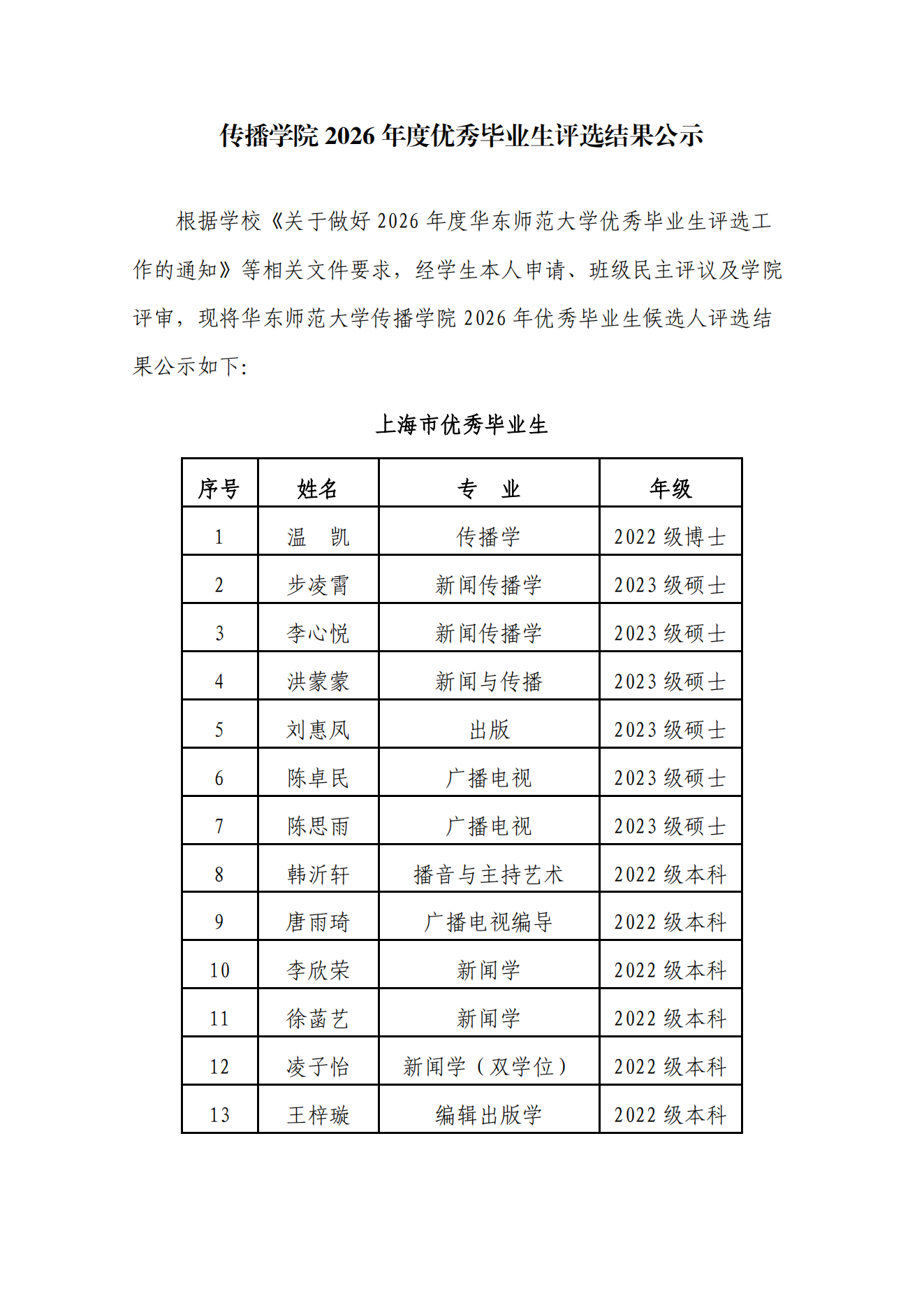 yl23411永利集团2026年度优秀毕业生评选结果公示