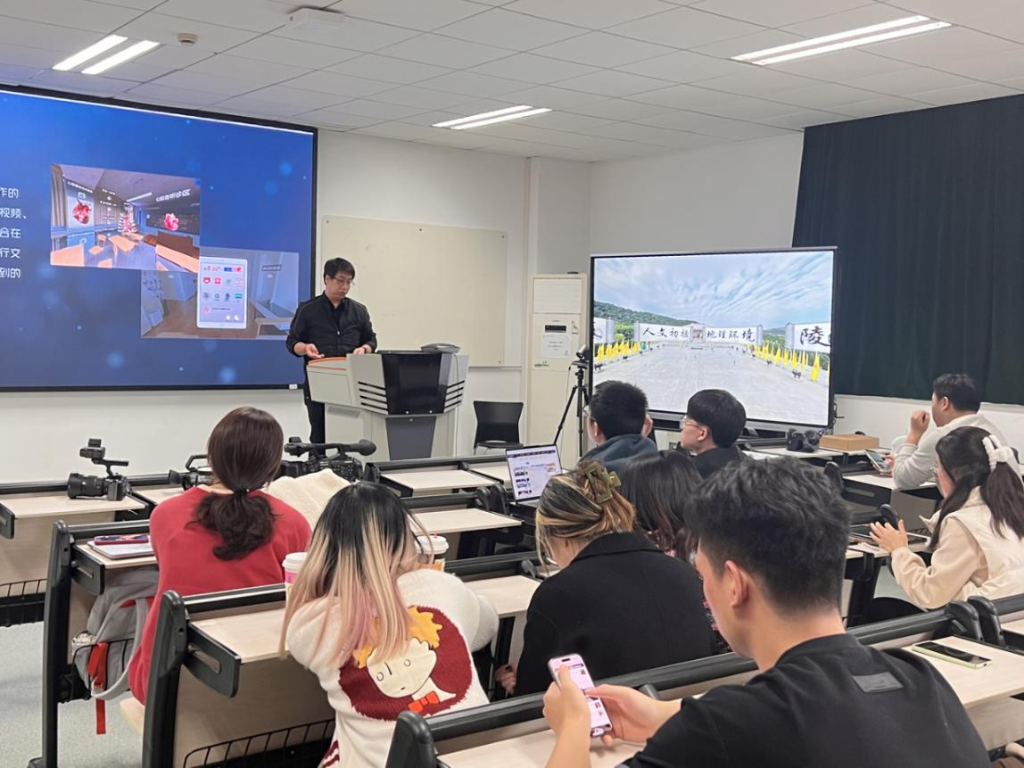 随后,来自上海美承的PM张老师为员工们介绍了元宇宙交互技术的分享讲座。为同学们详细讲解了虚拟现实中的场景建模应用。在这个数字科技飞速发展的时代,元宇宙概念正愈发引起人们的关注,逐渐融入我们的生活。创新应用更是为同学们打开了一扇通往未来的大门。