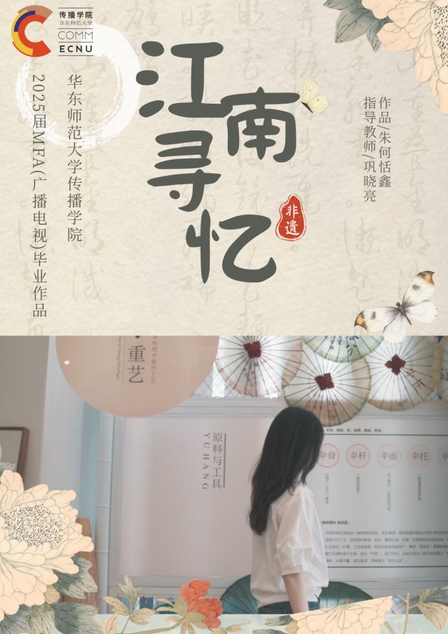 作品介绍:《江南寻忆》是一档非遗文化类节目,核心包含访谈+体验+纪录。节目以家乡——杭州余杭为背景,探寻家乡的非遗技艺杭州余杭油纸伞,挖掘油纸伞技艺传承与创新的故事。本作品选取了“余杭油纸伞”技艺的传承人:房金泉老师、刘伟学老师,以及穿花线的阿姨进行对话访谈,层层递进,丰富了节目的访谈内容。本节目还选取了不同的拍摄场景以塑造丰富的情景空间。节目前往“余杭纸伞馆”、“余杭纸伞展示馆”和竹林,通过三位老师传承故事、创新故事的挖掘,对制作过程的刻画,以及对油纸伞选材地竹林的谱写,为观众展现出杭州余杭油纸伞这一项非遗技艺,并实现情感传播。