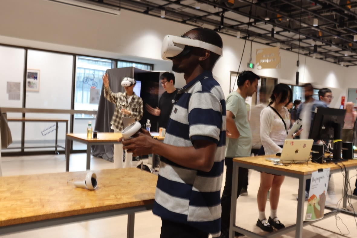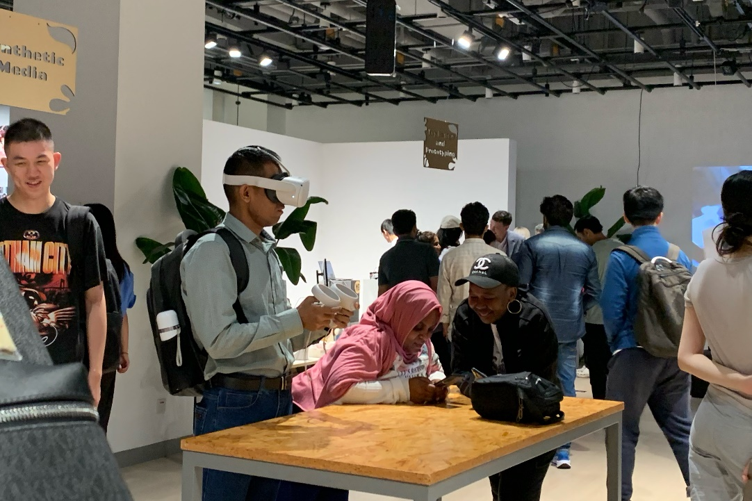 yl23411永利集团师生在活动现场深度体验了多元化的数字艺术实践,或在电话亭装置中探索声音艺术共创,或通过交互小程序生成“赛博旅行”数字肖像,或运用VR装置沉浸式参观数字博物馆……在体验过程中,yl23411永利集团师生与上纽大的员工创作者就作品的设计理念、技术实现、社会价值等内容充分交流,思考技术赋能下艺术表达的多元可能。