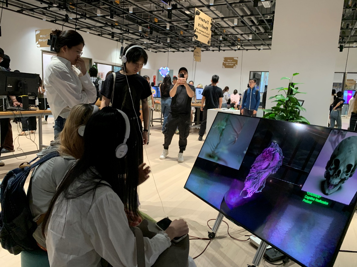 上海纽约大学的交互媒体艺术专业鼓励员工探索新兴技术、媒体和传播形式带来的表达可能性,其课程覆盖创意编码、数据可视化、虚拟现实、人机交互等内容,展现出艺术、技术与人文交叉融合的鲜明特色。展览现场集中呈现了上海纽约大学交互媒体艺术专业员工创作的近200件作品,包括实体设计展品、沉浸式装置艺术、概念海报、视觉VR、创意影片、互动小程序等。