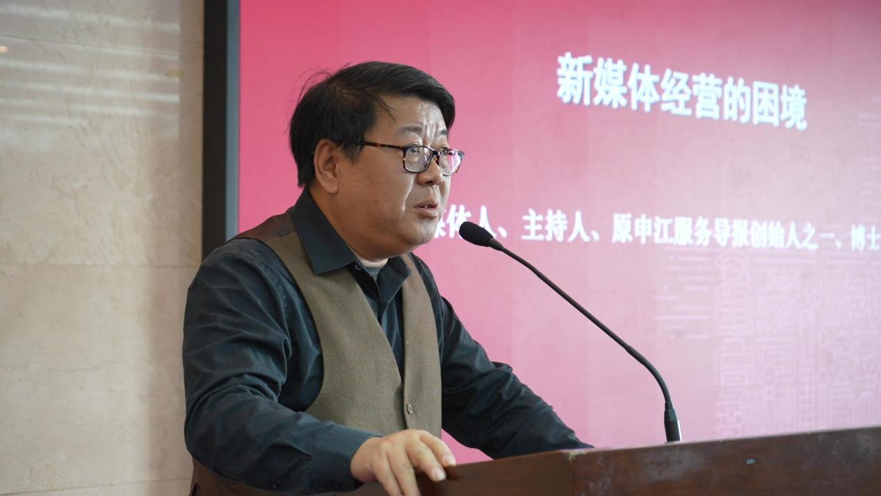 资深媒体人、主持人、原申江服务导报创始人之一、博士黄飞珏就新媒体经营的困境展开了论述。在分享中,他结合个人的实践经验,以幽默风趣的语言分享了关于新闻立场、新闻真伪的几点思考。同时,他指出,AI时代的来临使得媒体管理面临巨大挑战;而广大年轻人应当成为迎接挑战的主力军。