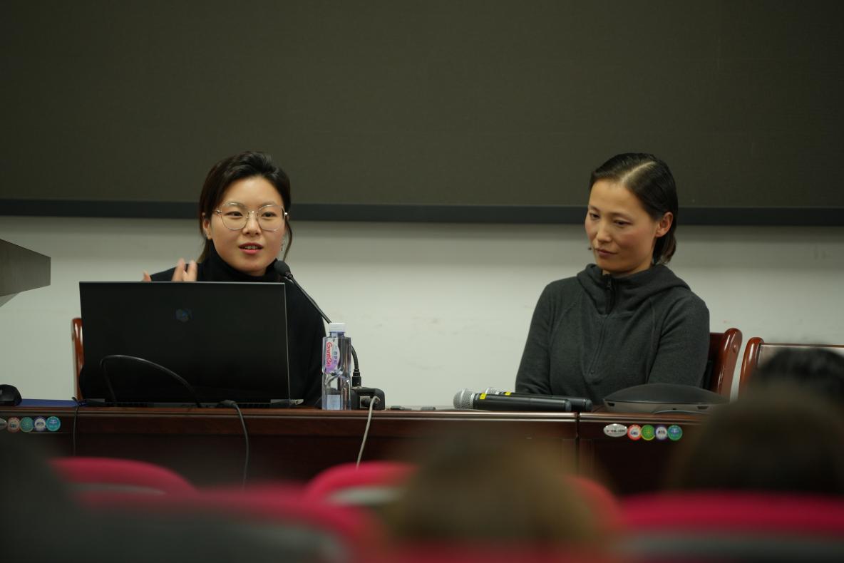 许以导演在此次讲座中分享了她筹拍毕业作品《二重奏》的心路历程和创作经验,围绕如何寻找建构自我作品的核心概念、如何在叙事短片创作中融入个人感悟、如何克服重重困难坚持自己的艺术理想等方面,与广电师生们进行了深入研讨。《二重奏》这部作品以黑白影调,电影质感,细腻情愫描绘出当代上海都市女性画像。主演高立沛也来到了现场,与同学们交流了作为一个演员应该如何深刻理解角色,在导演构思的基础上去融入自己的个性特色,让角色鲜活地树立在银屏上。