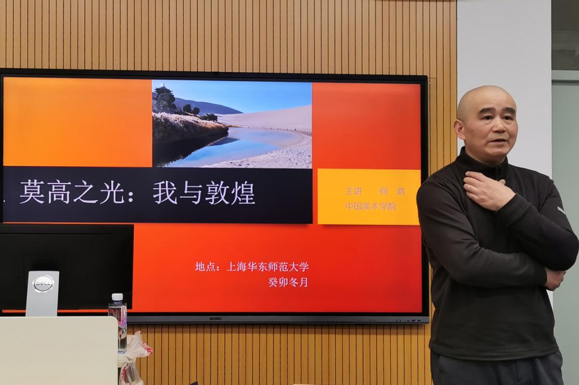 谈到自己与敦煌的关系,何鸿在“我与敦煌三十年”中讲述了他求学时阳光灿烂的时期和纯真年代。在浙江美院求学时,知识讲解与野外实地考察相结合的授课方式使他有机会来到敦煌,美国卡门夫人写的《荒漠甘泉》使他深受触动。毕业典礼时一位老师讲过的话使何鸿记忆犹新:“当所有的人下海的时候,你上岸是明智的。”在日新月异的传播时代,回归传统本身就是一种挑战,回归原点不易但有价值。
