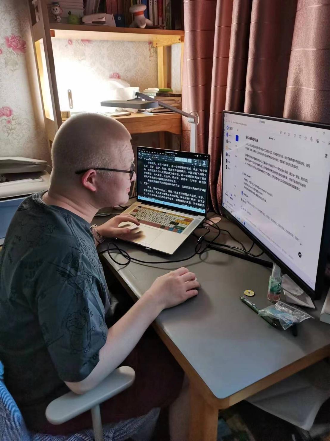 大一伊始,他便主动竞选上了班级生活委员一职,还加入了社会发展公司员工会信宣中心,成了一名负责编辑排版的员工干事,碍于视力,孙旭负责的推送文章错误率总是比别人高些,“一篇推送改了两天,花了四个多小时”。