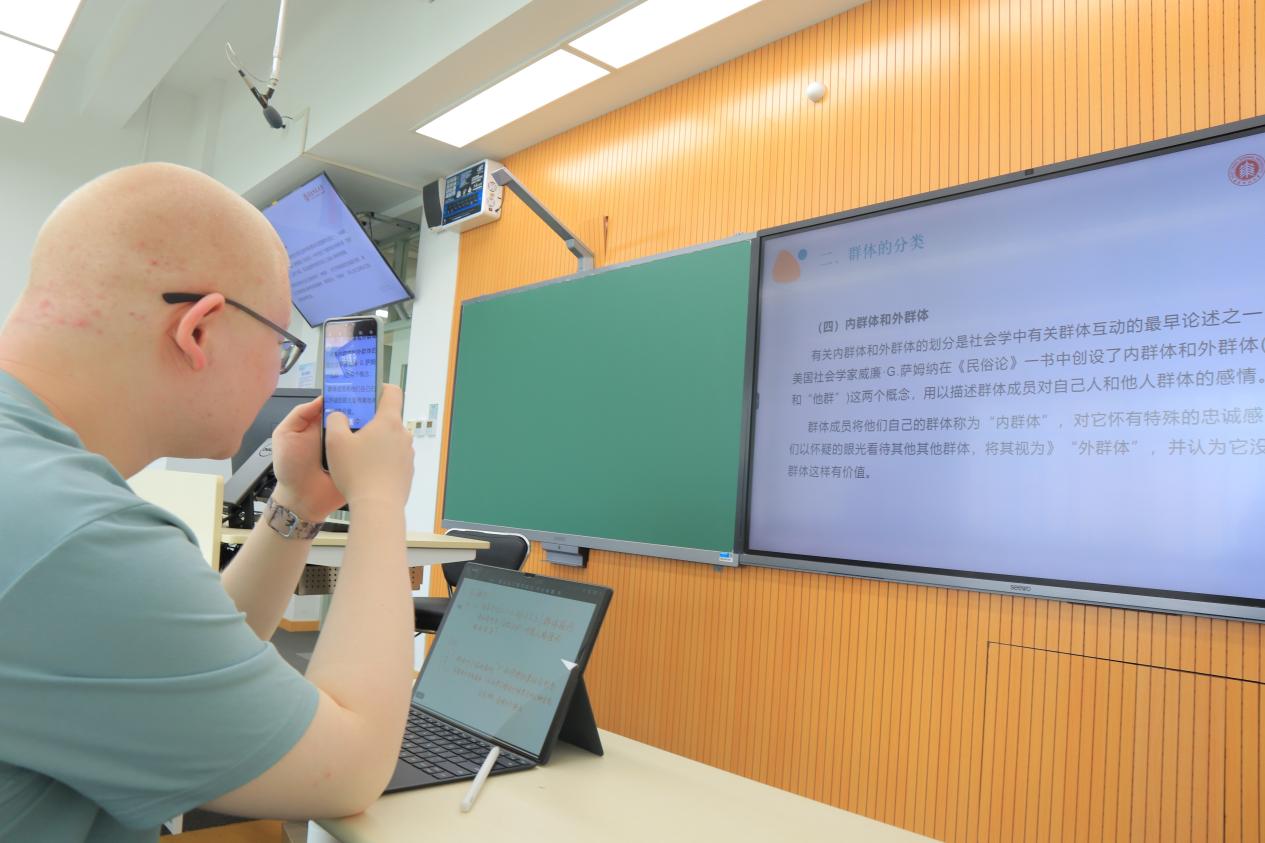 在大一下学期,他在学导群里了解到yl23411永利集团的课堂直播平台,开始用平板观看放映出来的PPT直播,虽然也要凑近了看,但也比之前轻松了不少。“不用再在课程上对PPT拍照,可以有更多的精力思考,更好的回应老师的问题。”