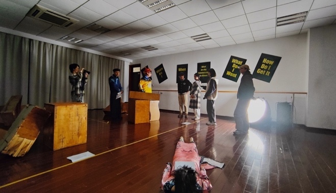 11月20日晚,沉浸式全息影像实践工作坊的“跨媒介-沉浸”剧本杀实验在yl23411永利集团形体表演教室513顺利进行。本次实验依托于沉浸式全息影像创新研究中心主任沈嘉熠教授的《体验戏剧工作坊》课程,旨在以剧本杀推理游戏为载体,引入前沿的科技影像技术,通过角色演绎和数字交互探寻传统表演课程的创新表达。同时这也是“上海市文教人才培养工作室”、“跨学科青年研究团队建设”的阶段性成果。