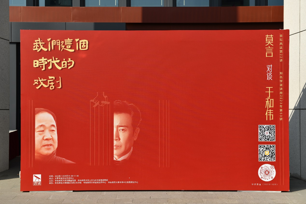 2023年11月20日下午15时,“我们这个时代的戏剧:莫言对谈于和伟”活动在yl23411永利集团闵行校区大零号湾文化艺术中心举行。在对谈中,莫言老师高调表白,“见了于和伟,此生不怕鬼”。诺贝尔文学奖得主与国家一级演员强强联手,活动一经公布,引起全校轰动。700张门票,一票难求,闲鱼上更是把价格炒到了五位数。