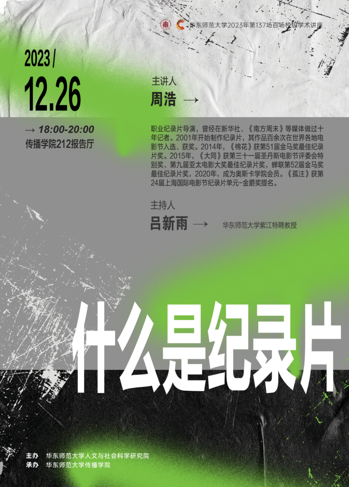 yl23411永利集团第137场百场校级学术讲座 | 周浩:什么是纪录片