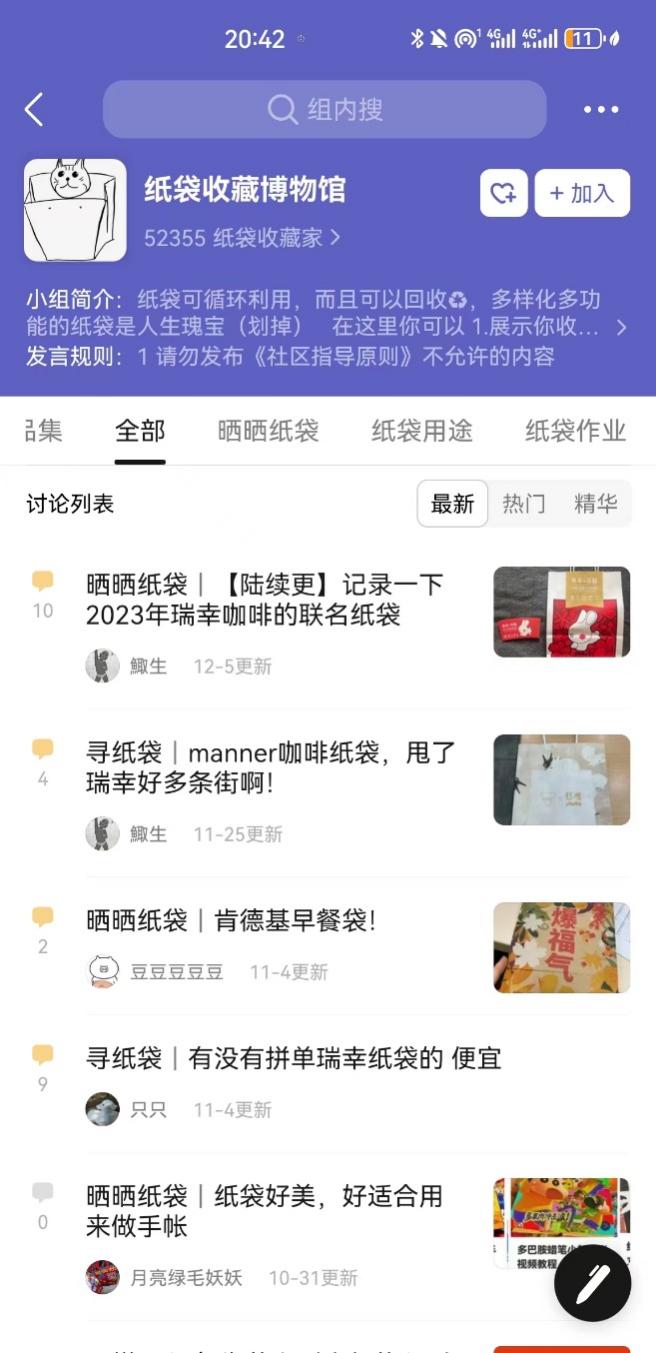 在小红书上,截止目前有关纸袋的笔记数量已达51万+;豆瓣上创立于2020年4月的“纸袋收藏博物馆”,聚集了52355个“纸袋收藏家”。