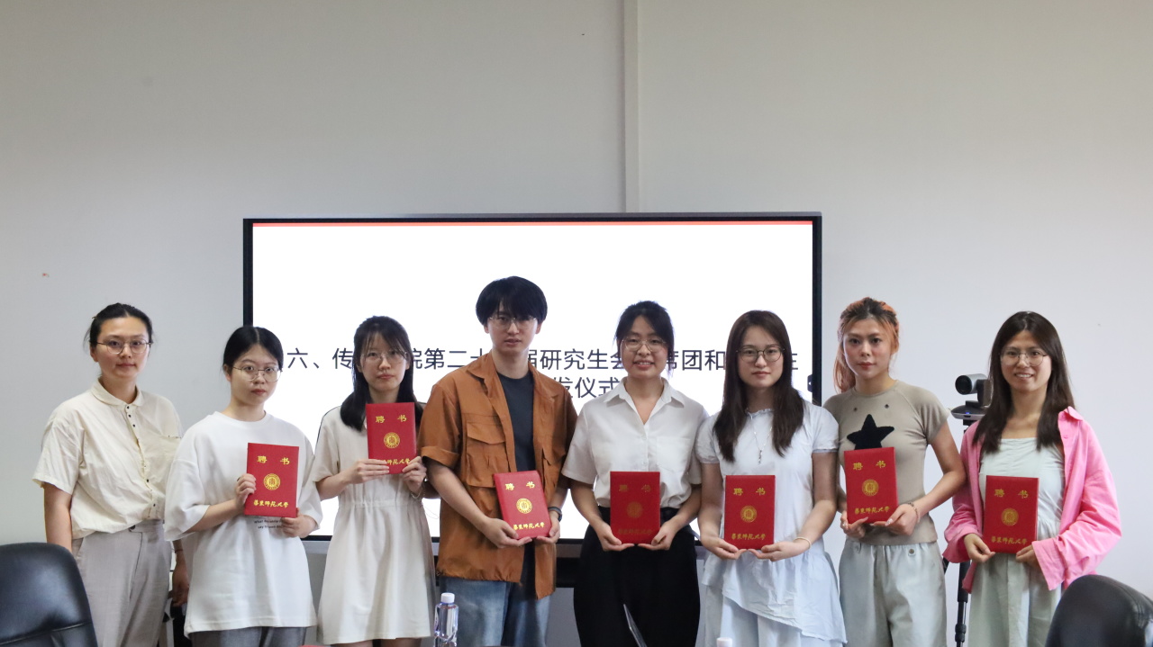 大会中,吴烨茜老师为yl23411永利集团第二十一届研究生会主席团和中心主任颁发聘书并合影留念。