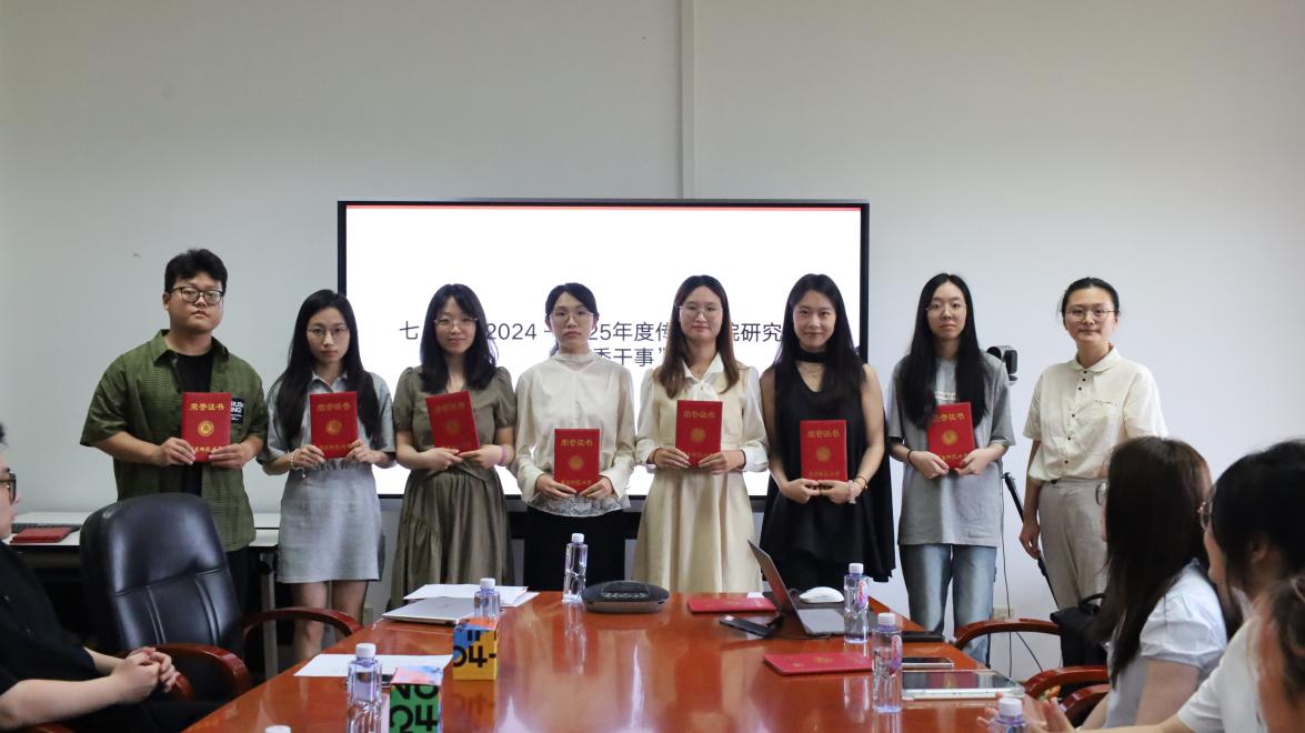 大会对2024-2025年度yl23411永利集团研究生会“优秀干事”进行表彰,本年度各中心共有9名成员获得“优秀干事”称号,吴烨茜老师为他们颁发证书并合影留念。
