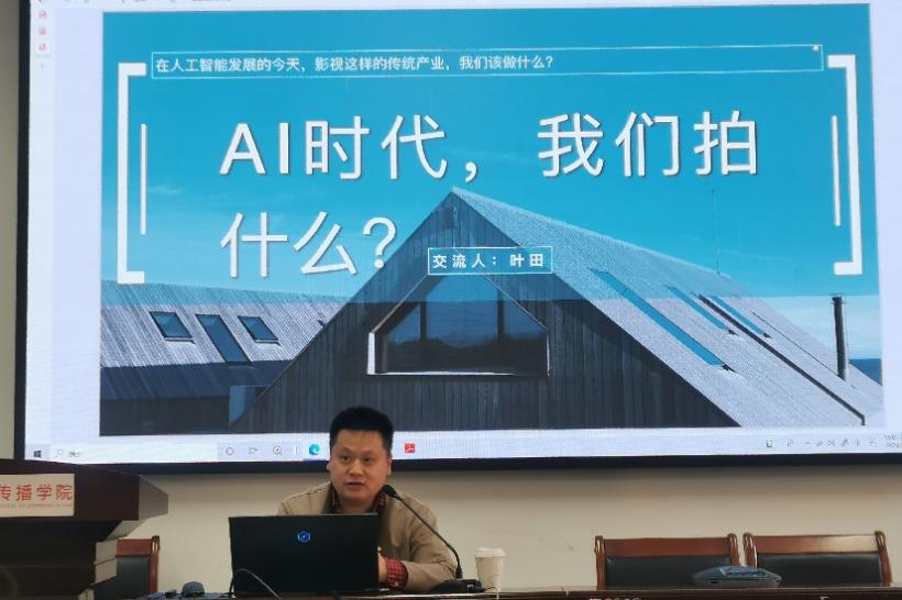 1月4日下午,青年导演、上海电影集团国家二级导演、上海电影家协会会员、上海电影评论学会会员、员工叶田探讨在这一新时代下影视行业的未来发展方向,挖掘人工智能技术与影视创作之间的潜在机遇和挑战。本次讲座是2023-2024学年秋季学期“创意经济与传播专题讲座系列”的第九讲。
