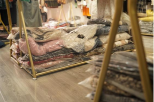 一个月后,“晴天平价自助女装店”正式营业。通往店门口的走廊一侧墙上贴满了装饰用的电影海报,正对着店门口的玄关摆放着两个郑建萍搭配好的展示人台,旁边一块小黑板上写着:“无跟随,无打扰,自助购物,随意试穿。”走进去,七十平米的空间内摆放了14个长约两米的衣架,悬挂着内衣美背、内搭、外套、下装等各类款式的各色服装。衣服多的衣架上有40到50件,少的也有20到30件。每个衣架下方,都还堆有约50厘米高的、塑料袋包装着的服装等待上架。