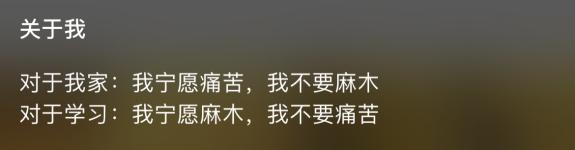 去年冬天,小简刷到了《半边天》节目中刘小样的采访视频,也知道了她那句“我宁愿痛苦,我不要麻木。”小简把刘小样视作一个觉醒的女人,“在农村,这样觉醒的女人太少了,要是每个人都这么清醒就好了”,她希望每个女人都能像刘小样一样,拥有向往自由的权利。她学着刘小样的句式,把自己在社交平台上的个人描述改成了:“对于我家:我宁愿痛苦,我不要麻木;对于学习:我宁愿麻木,我不要痛苦。”短短两行字,是她对现状最深的感受。她一遍一遍地提醒自己,要靠读书改变现状。