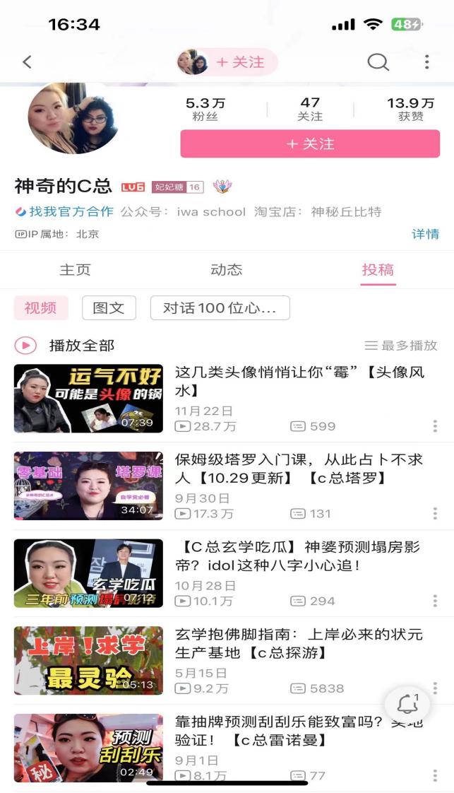 鉴于诸多原因,年轻的玄学从业者只能游走在灰色地带,他们的运营方式也带有隐蔽性。“线上”是他们经常提及的词。伊宁和雯雯都通过在社交平台上发帖,来吸引流量接单,“发帖一天,就会有几十个人来找我”。但现在,平台对玄学产业的管控更加严格,她们都收到过限流、禁播、封号等警告,“现在发帖不能提及占卜,因为这是敏感词,只能说是咨询”。仍是员工的周凯,则瞄准了线上的老员工群体。他在各个大学的“墙”(用来收集和发布本校或外校老员工投稿的账号)上发布接单帖,先免费再收费,“培养顾客粘性”。另外,像“神奇的C总”等具有一定经验和声望的玄学从业者更注重打造线上的个人IP,他们通过运营自己的短视频平台账号,来提升曝光率、吸引流量。