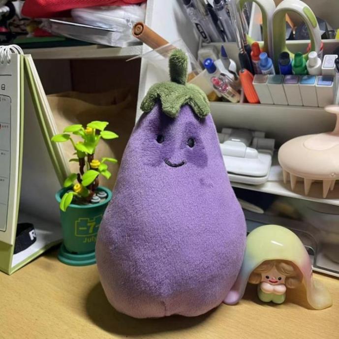 2022年11月,胡飞飞的好朋友正在准备跨专业考研,她选择了一个小小的活泼茄子作为礼物送给她,希望缓解朋友的压力。“我买的那个只有十几厘米,是最小的那个款。当我朋友去图书馆或者是在宿舍的时候,那个茄子就可以放在前面看着她学习,督促,鼓励她学习的同时也能治愈她的疲惫吧。”