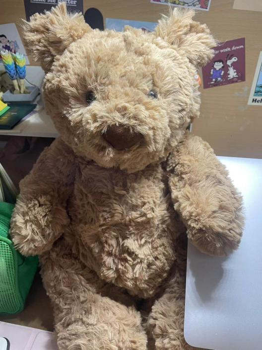 胡飞飞的第一只jELLYCAT是一只巴塞罗熊,她给它起名为“呆呆”。“别人是没有办法想象的,当我上床那一刻,看到呆呆坐在那边,我会非常非常的感动,就想把他抱在怀里,这对于我来说很治愈。”“呆呆”在她的眼中,不仅是一只玩偶,更像是一个男宝宝。“我会忍不住去给他打扮,买好看的衣服,还让我妈妈给他织了一条围巾。”