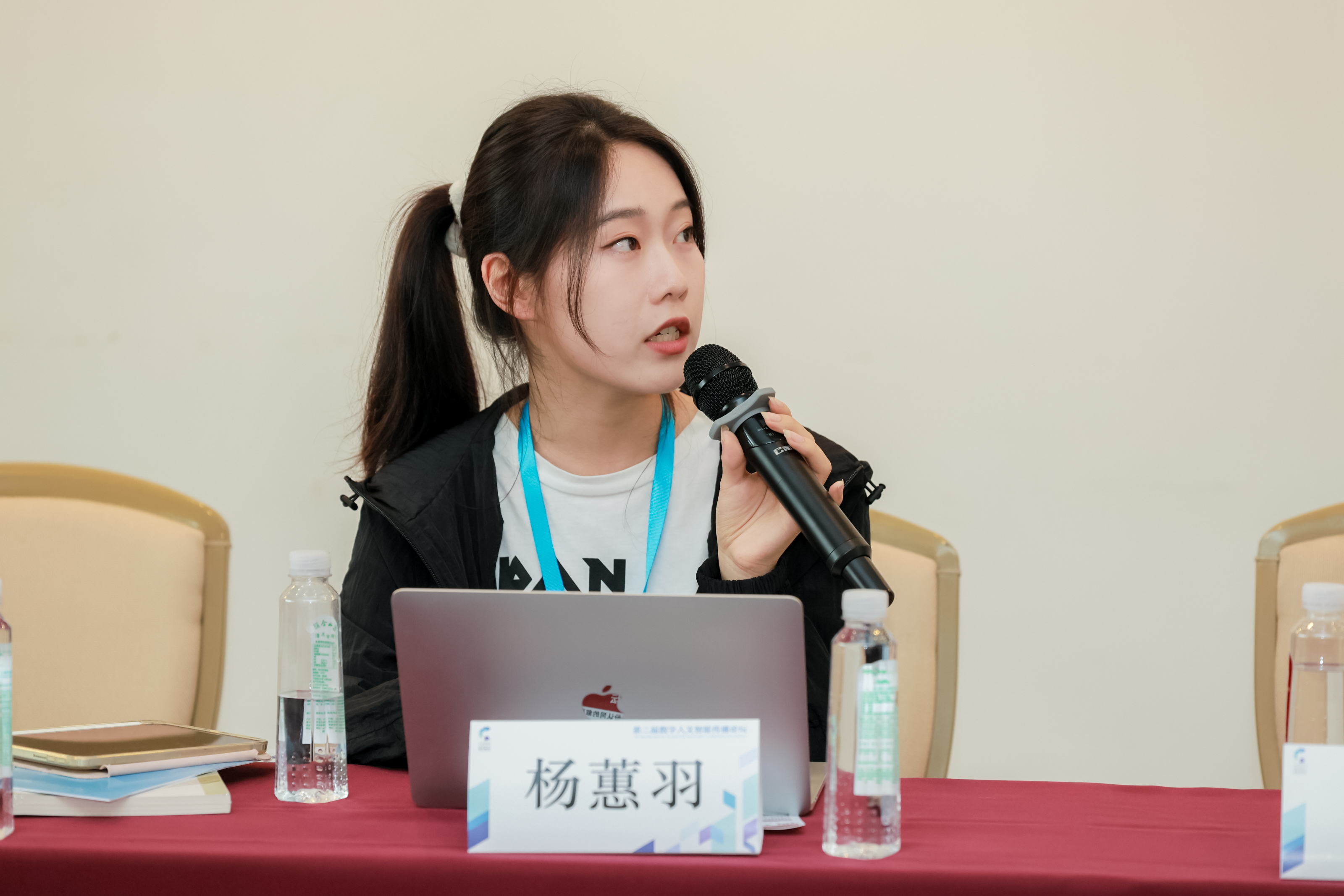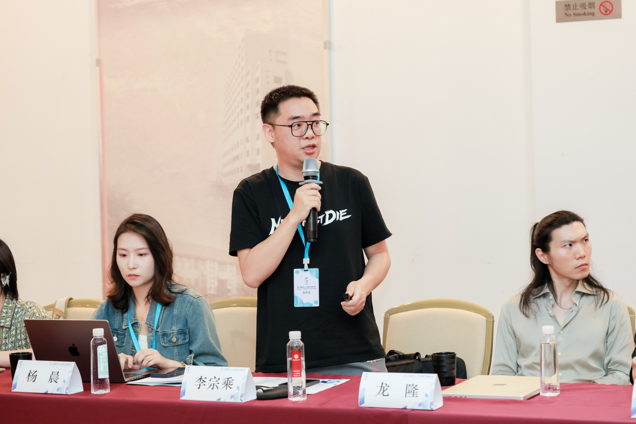 分论坛二由朱生坚主任、于晶副经理主持,冯静研究员、周春玲主任点评。上海广播电视台尚世影业总经理助理、国家一级导演崔轶从VR电影创作实践出发,分析了VR电影导演在叙事、拍摄技术和观众体验等方面面临的挑战;再伸科技创始人司禹聚焦AI引擎对沉浸式交互内容叙事结构的影响,探讨了AI技术如何重塑沉浸式故事的呈现方式;纽约Cubicten佰拾创意科技创始人龙隆则从感官包裹到行为参与的角度,展望了沉浸式体验的未来发展方向,强调交互性在沉浸式内容中的重要性。青年学者们对“沉浸性”的多元形态、VR体验、文博空间、数字具身等前沿议题的探讨,不仅丰富了沉浸性研究的理论维度,更为实践创新提供了重要参考。