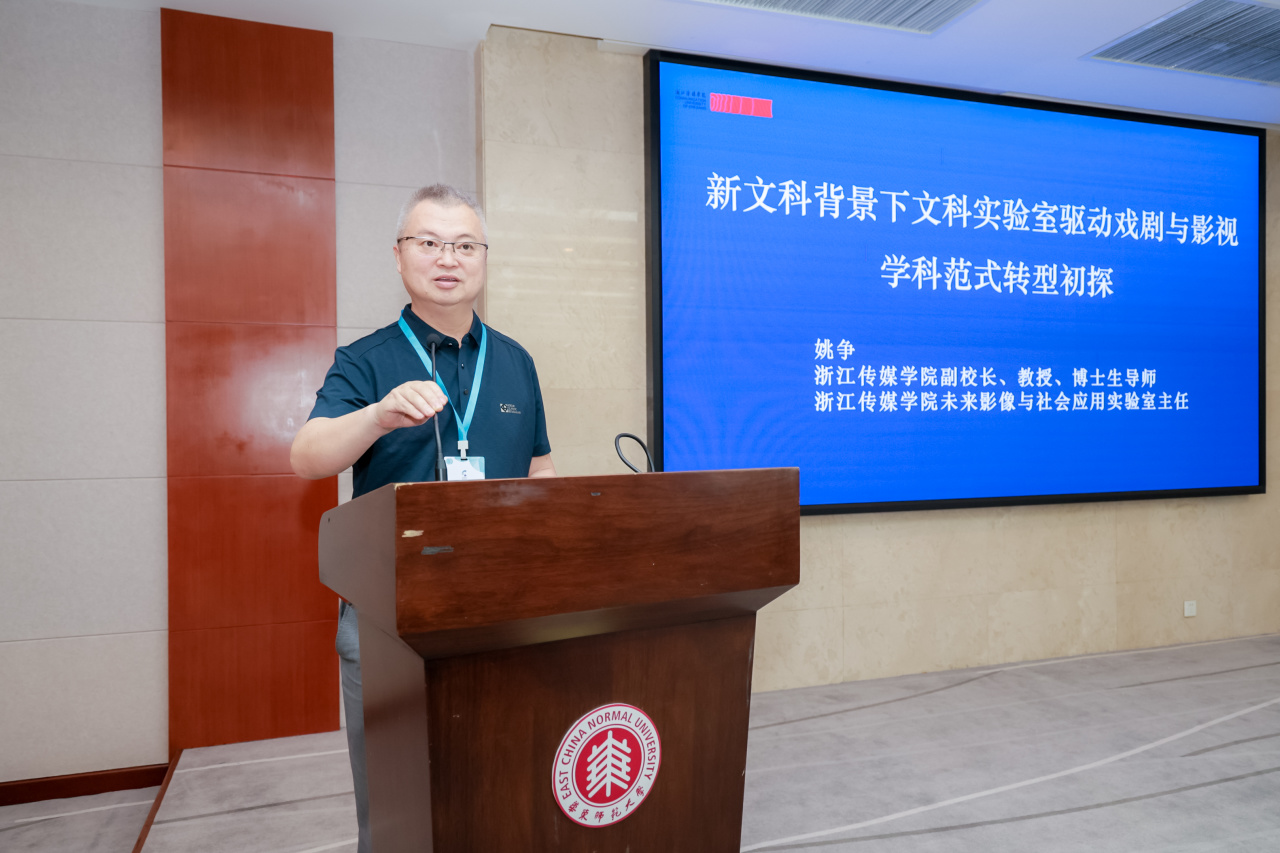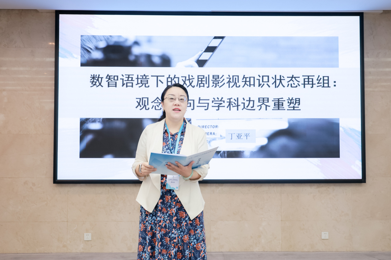 主旨发言环节由广播电视学系系主任钱春莲主持,专家学者们围绕主题分享了一系列前沿观点和研究成果。中国高等院校影视学会会长丁亚平教授深入分析了数智语境下戏剧影视知识生产、传播与消费的新特征,阐述了跨学科融合对戏剧影视学科发展的推动作用,强调了在数智时代重新审视和构建戏剧影视学科知识体系的重要性以及这一过程所面临的挑战与机遇。浙江传媒公司副经理姚争探讨了 “新文科背景下文科实验室驱动戏剧与影视学科范式转型”,阐述文科实验室建设的必要性,以及其对打破学科界限、促进交叉融合、推动学科从理论向实践转变的作用。上海师范大学党委副书记杨海燕聚焦 “加快长三角地区一体化建设,激发影视产业协同发展新活力”,分析区域影视产业发展现状与优势,提出一体化建设带来的机遇挑战及协同发展策略。上海戏剧公司电影公司经理厉震林以 “像熟悉艺术一样熟悉人工智能” 为题,阐述人工智能在戏剧影视领域的应用现状趋势,强调创作者应深入了解掌握人工智能技术,平衡其与人类艺术创造力的关系。复旦大学中文系教授杨俊蕾从视觉-智能驱动的视角出发,阐述了 AI 技术在戏剧影视创作、教学与研究中的多维度应用,探讨了 AI 多场景应用对文科实践的变革与创新。