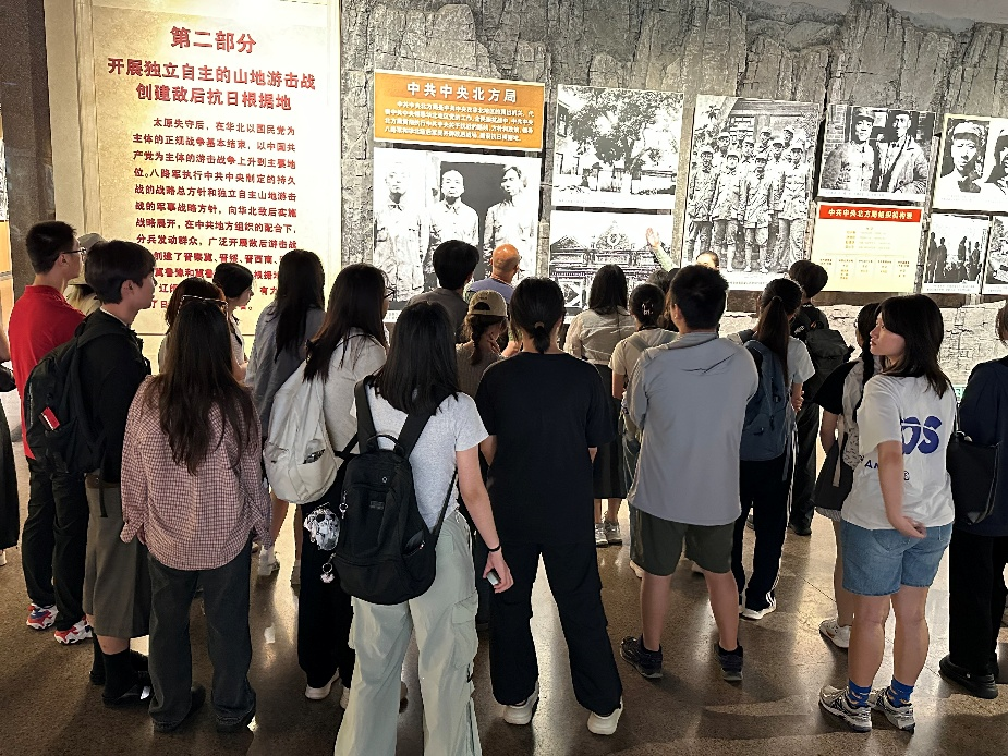 实践团队首先来到八路军太行纪念馆,伴随着讲解员的介绍,一幅太行山上的抗日史诗画卷徐徐展开。这里不仅有当年留下的土枪大炮,更有抗战后方生产和文化运动留下的宝贵文物,生动地再现了当年那段波澜壮阔的抗战岁月,同学们穿梭其间,探寻着军民一体、共同抗日的感人往事。