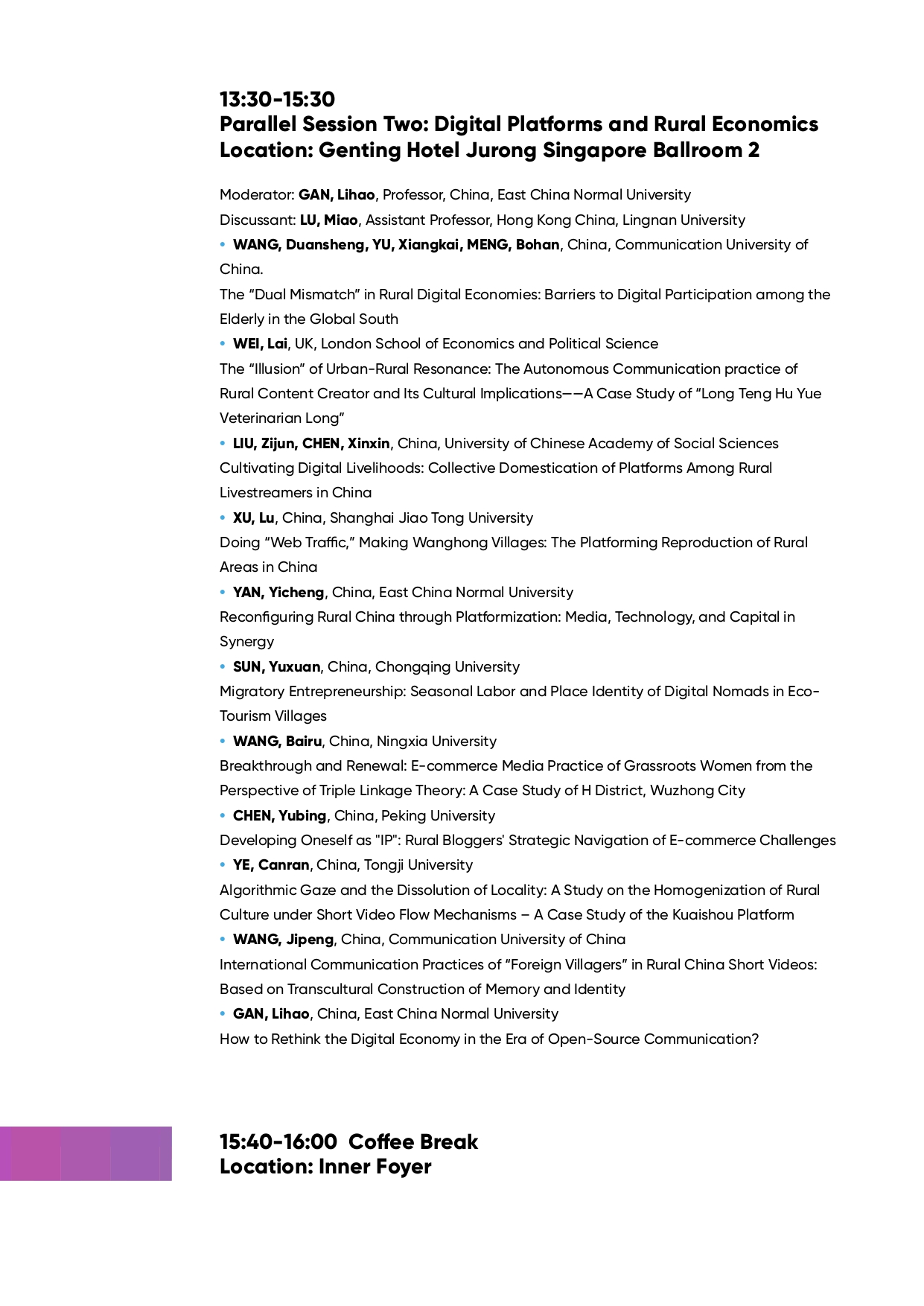 IAMCR Pre-Conference Program: Digital Economy, Communication and Rural Development:Retrospect, Reflection and Praxis