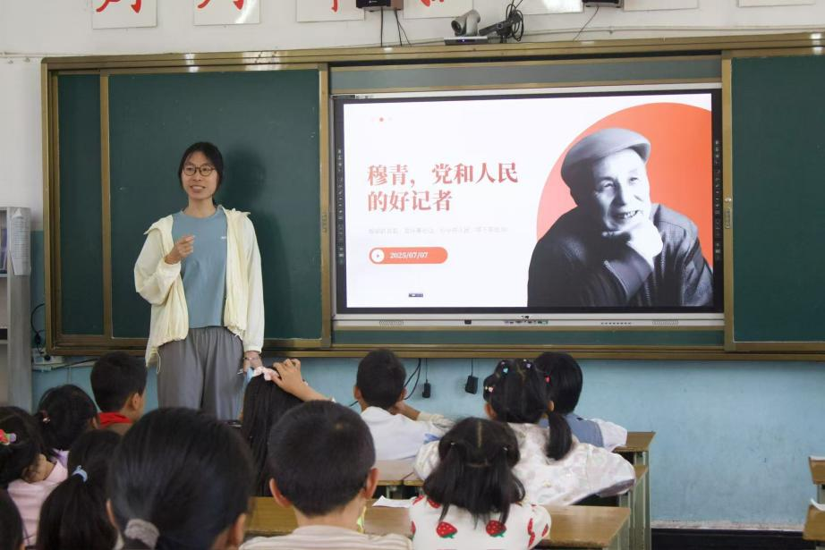 “小小记者·小小编辑”课程则通过模拟采访、校园简讯编辑等实践环节,让孩子们亲身体验新闻传播的魅力,在互动中培养使命担当。团队带去的首套童探·KidKey 博物馆剧本游数智产品《萤火》,以儿童文学改革发展之路为主线,通过“玩中学”的方式展现中国新闻史的波澜壮阔,深受孩子们喜爱。
