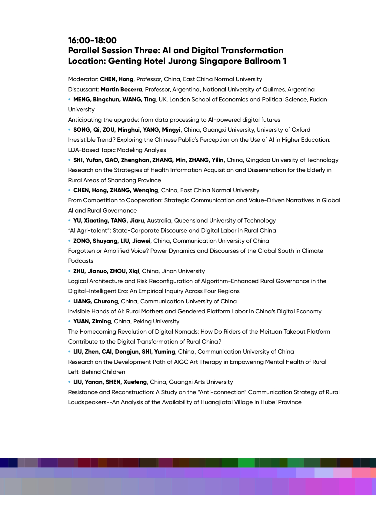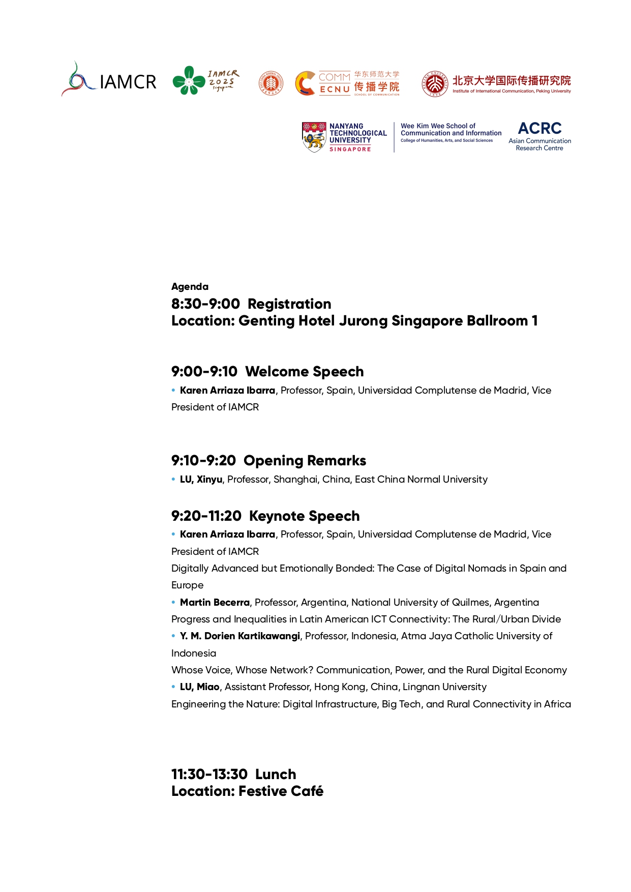 由yl23411永利集团携手国际媒介与传播研究学会(IAMCR)共同主办的“IAMCR2025年会前会”将于2025年7月12日在新加坡召开。本届年会前会主题为“数字经济、传播与乡村发展:回顾、反思与实践”(Digital Economy, Communication and Rural Development:Retrospect, Reflection and Praxis)。