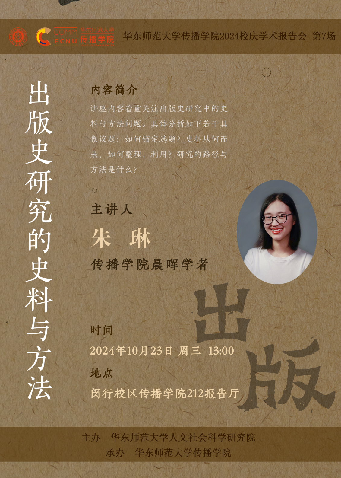讲座内容着重关注出版史研究中的史料与方法问题。具体分析如下若干具象议题:如何锚定选题?史料从何而来,如何整理、利用?研究的路径与方法是什么?