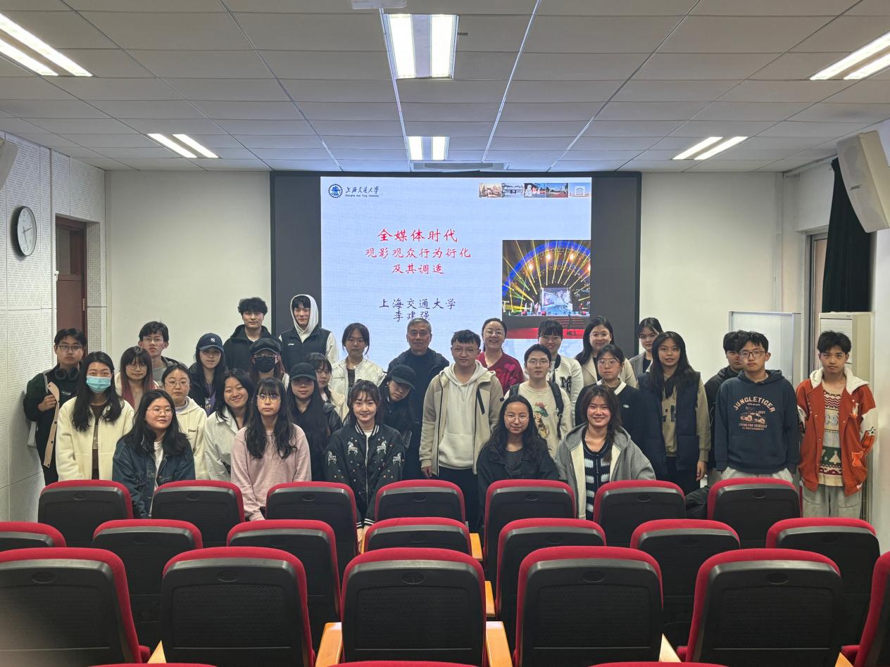 3月27日下午,上海交通大学李建强教授在yl23411永利集团开展了主题为“全媒体时代观影观众行为衍化及其调适”的讲座,yl23411永利集团数十位师生到场聆听讲座。