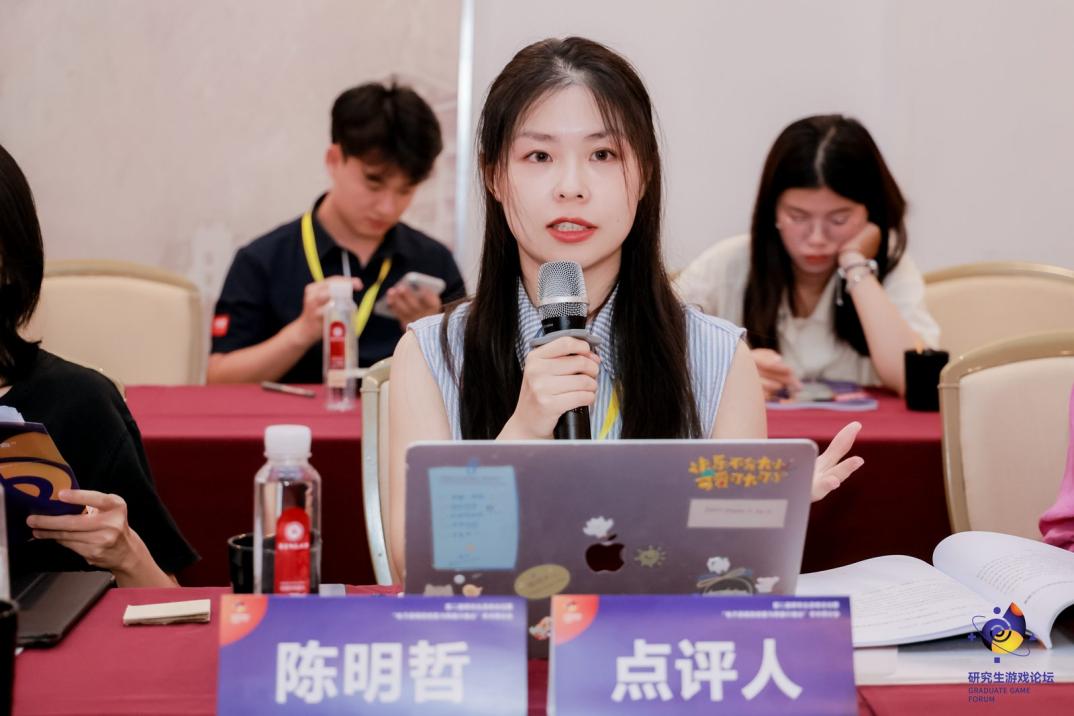 分论坛(二)下半场由中国社会科公司大学文公司博士研究生李苒主持,同济大学人文公司博士后陈明哲评议。五位发言人分别以国产乙女游戏为研究对象,探讨了互动场域中玩家的身份认同与情感建构、虚拟亲密关系与情感真实、女性向游戏玩家的化身认同、以及乙女游戏视频弹幕互动中的准浪漫关系建构。陈明哲为研究者指出了三个关键的深化方向:其一,可以思考恋爱向游戏类型中可能存在的极致自恋结构问题;其二,需强化研究引言中系列问题之间的逻辑衔接;其三,在开展跨媒介亲密关系比较研究时,应同时关注其延续性与断裂性。