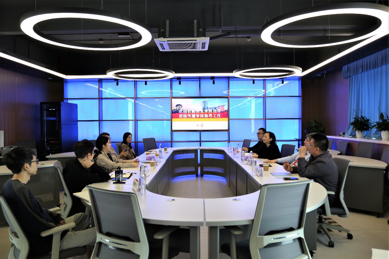 王峰首先对创新创业公司一行的来访表示欢迎;于晶介绍本科教学培养和创新创业工作管理现状,围绕“重人文、强实训”的卓越新闻人才培养模式,yl23411永利集团双创工作在不断完善制度保障和服务指导机制、落实自主平台优化发展等方面稳步推进;朱文佳对yl23411永利集团双创工作现状进行总结,强调公司双创工作要进一步打通产学研一体化链条,在新文科赛道中积极把握新时代数字媒介与智能传播优势。