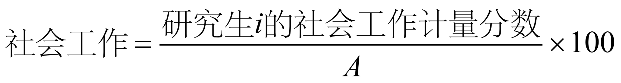 其中,研究生i的社会工作计量分数按如下表6、表7确定的社会工作类成果量化标准将有关成果量化求和,再加上其他社会工作成果的量化结果得出,