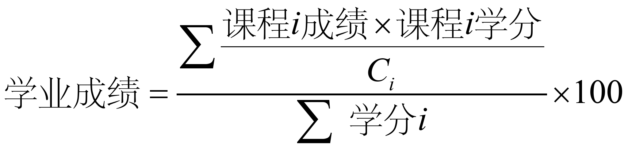 为同专业候选人同一课程i的成绩最高分,课程i学分为公司产品计划规定的课程i的学分数。